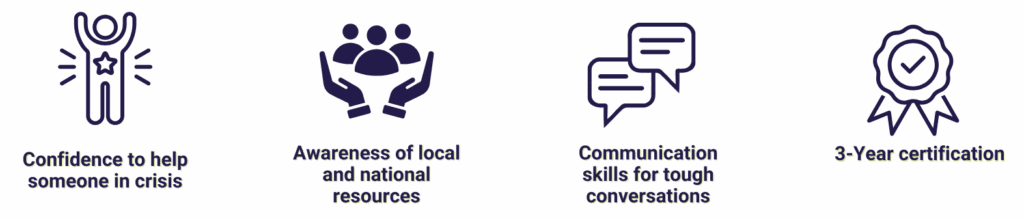 Both teach valuable skills around recognizing the warning signs in somebody struggling with their mental health, and how to connect them with care.